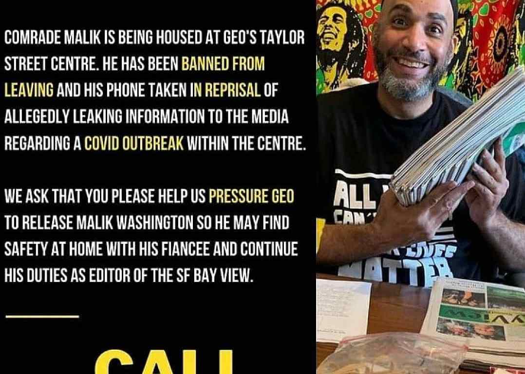 Hi, My name is_________and I live in _________(your state, city) and I demand that the GEO group run Taylor Center release as many people on Home Confinement as possible to both curb the spread of COVID-19 and aid in their rehabilitation. Keith ‘Malik’ Washington (USMS# 34481-037) and all of those housed at the Geo Group run Taylor Center face unfit living conditions and a COVID-19 outbreak. The Taylor Street Center is located in the Tenderloin which is notoriously known for its drug activity. As of October, 7th 2020, Keith celebrated the milestone of 13 years of sobriety. His request to be placed on home confinement and to transfer to the Northern District of California was denied recently. Home Confinement is the only way to ensure the safety and rehabilitation of Keith and all residents of the Taylor Center. Community members nationwide consider the denial of Keith’s Home Confinement request as an act of retaliation for his speech at the No More Cages Rally. Keith is a lifeline at the San Francisco Bay View National Black Newspaper and his contribution spans well beyond his position as the editor. It is crucial that he remain near his place of work so that he may respond to any emergencies that octogenarian owners Mary and Willie Ratcliff may have. Mary has cancer and Willie is suffering from Dementia and they are within a high-risk class for complications if they contract COVID-19. Keith’s place is with his Fiance Nube Brown in their apartment, which is minutes away from their shared workplace at the SF Bay View. When they are not working on the newspaper, they are heavily involved in serving the unsheltered and low-income community through mutual aid and food distribution at Mother Brown’s.in San Francisco’s Bayview- Hunter’s Point.